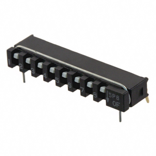 natančen opis Dip Switch SPST 8 Position Through Hole, Right Angle Slide (Standard) Actuator 10mA 20VDC Trenutna ocena 10mA