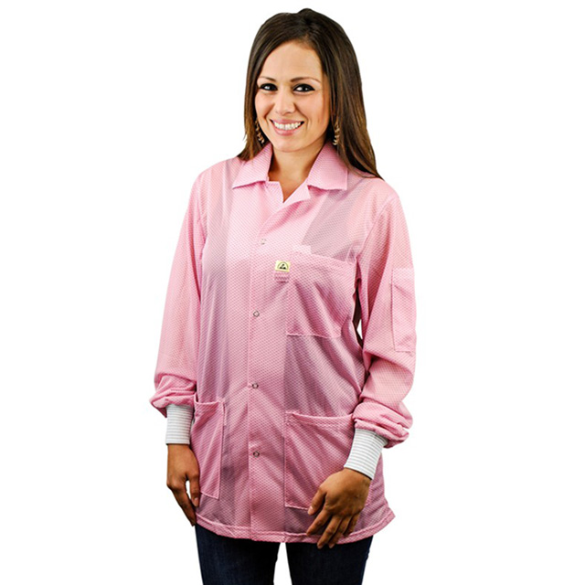 natančen opis Polyester Smock, Jacket Length with Cuffs Medium Pink 4mm Snap Stud on Hip, Badge Tab, Pockets, Static Dissipative Barva Pink
