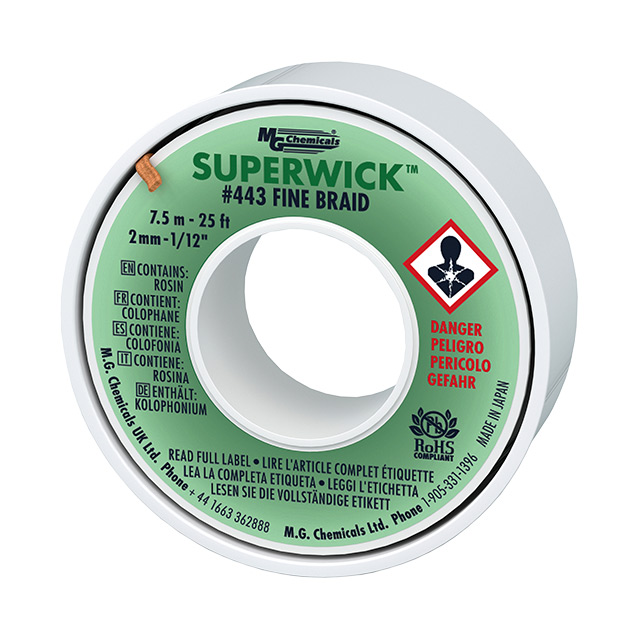 Opis DESOLDER BRAID ROSIN 0.075" 25' Status svobodnega statusa / RoHS Brez svinca / RoHS