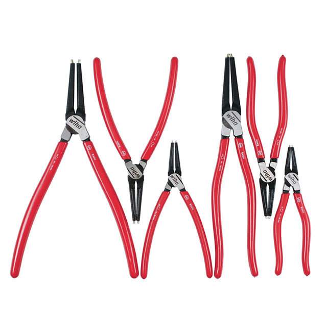 Lastnosti Set of 6, For External and Internal Rings, Includes Pouch, Oil and Solvent Resistant, Soft Grips natančen opis Pliers Set Pliers Pointed Nose Smooth Assorted